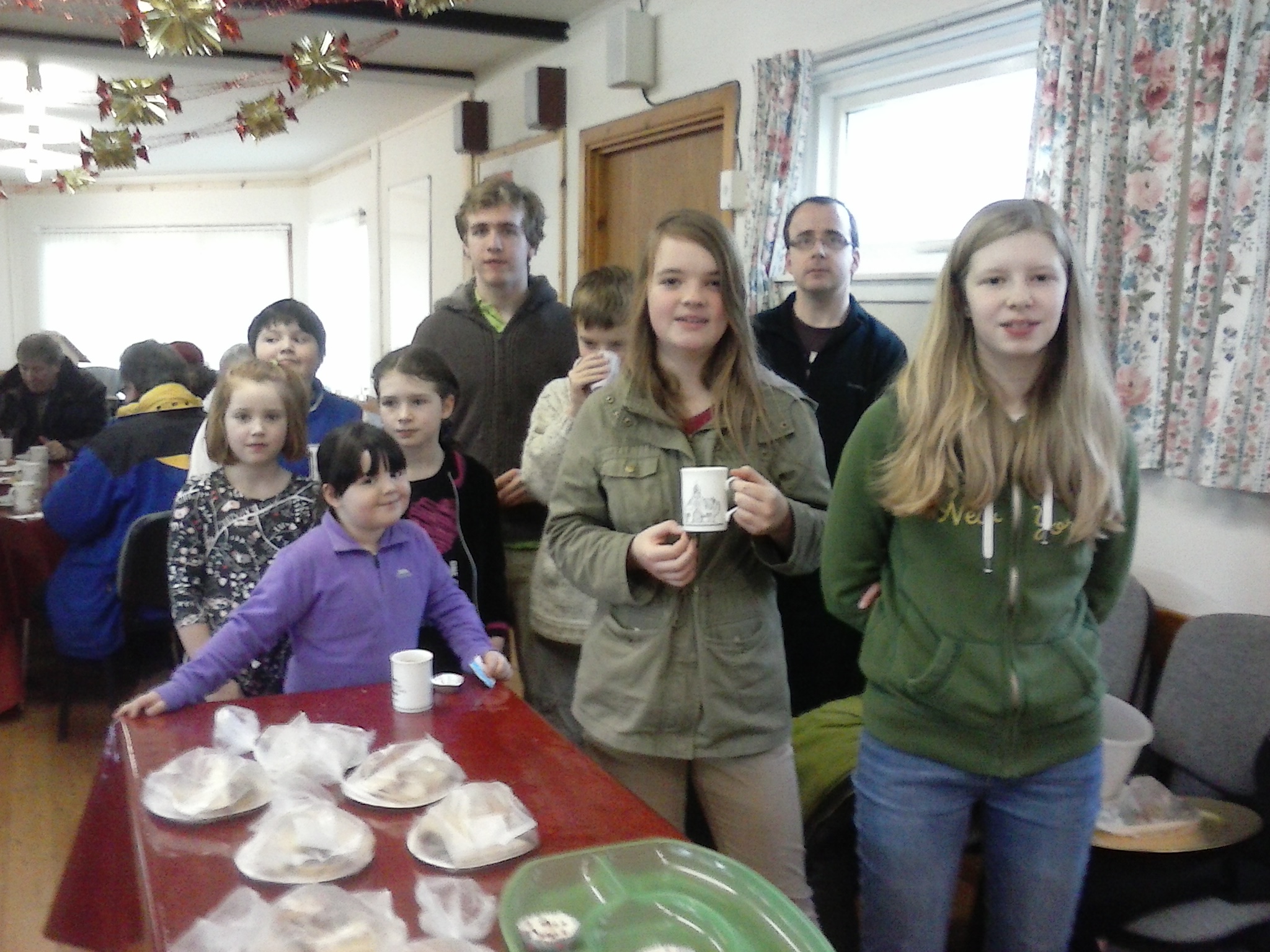 On Saturday 6th December, instead of having our traditional Christmas party, we all went to the Pantomime in Dingwall Academy to see “The Three Musketeers” a play by the Dingwall Players. The play starred one our members of FYF, Fraser Holmes. Everyone had a really enjoyable time. Below is a picture of the members of the Sunday Club and FYF who came along to the event.