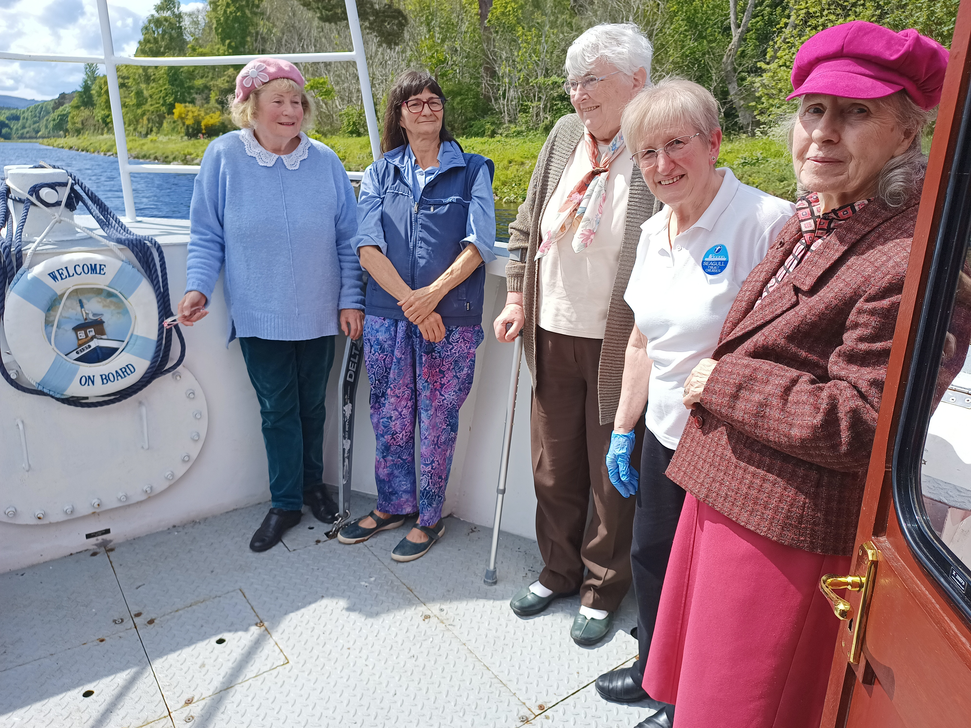 What a glorious day out we had on Thursday 2nd June courtesy of the Seagull Trust! We boarded the boat at Tomnahurich Bridge and sailed through the two swing bridges to Dochgarroch. We saw a huge heron on the bank, some paddle boarders, some canoists–one with spaniel who would jump on and off the canoe– and lots of cyclist and walkers on the path alongside. We even had a great view of the Loch Ness Monster! Really!