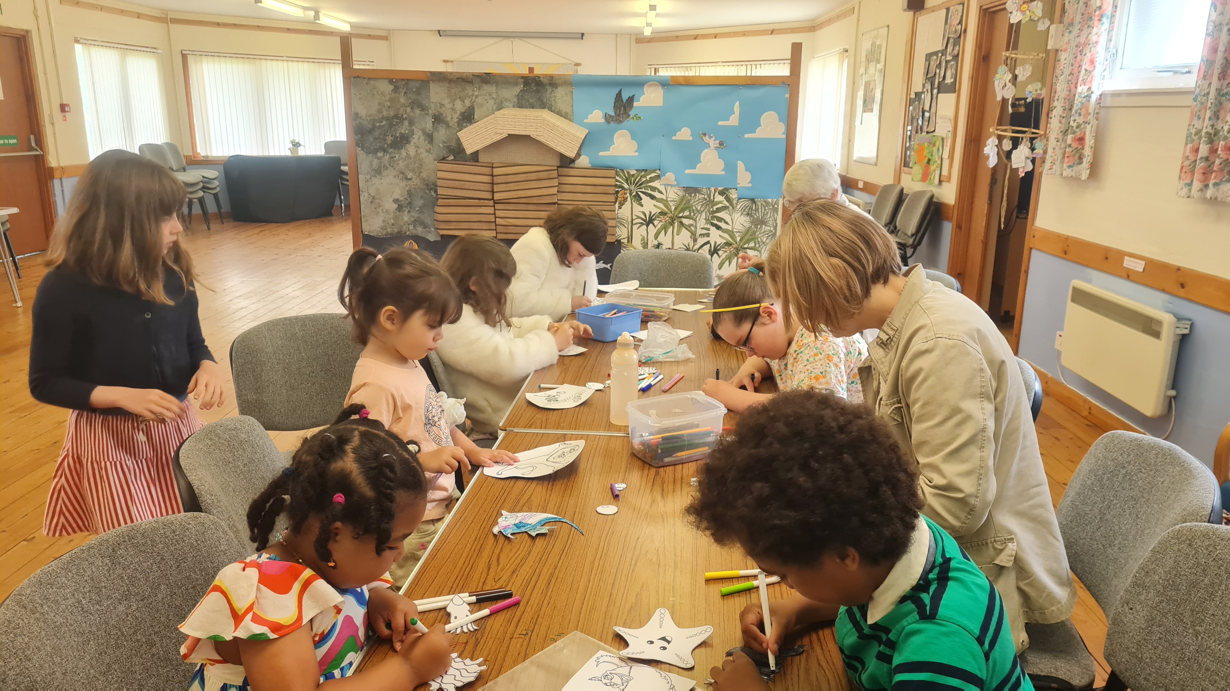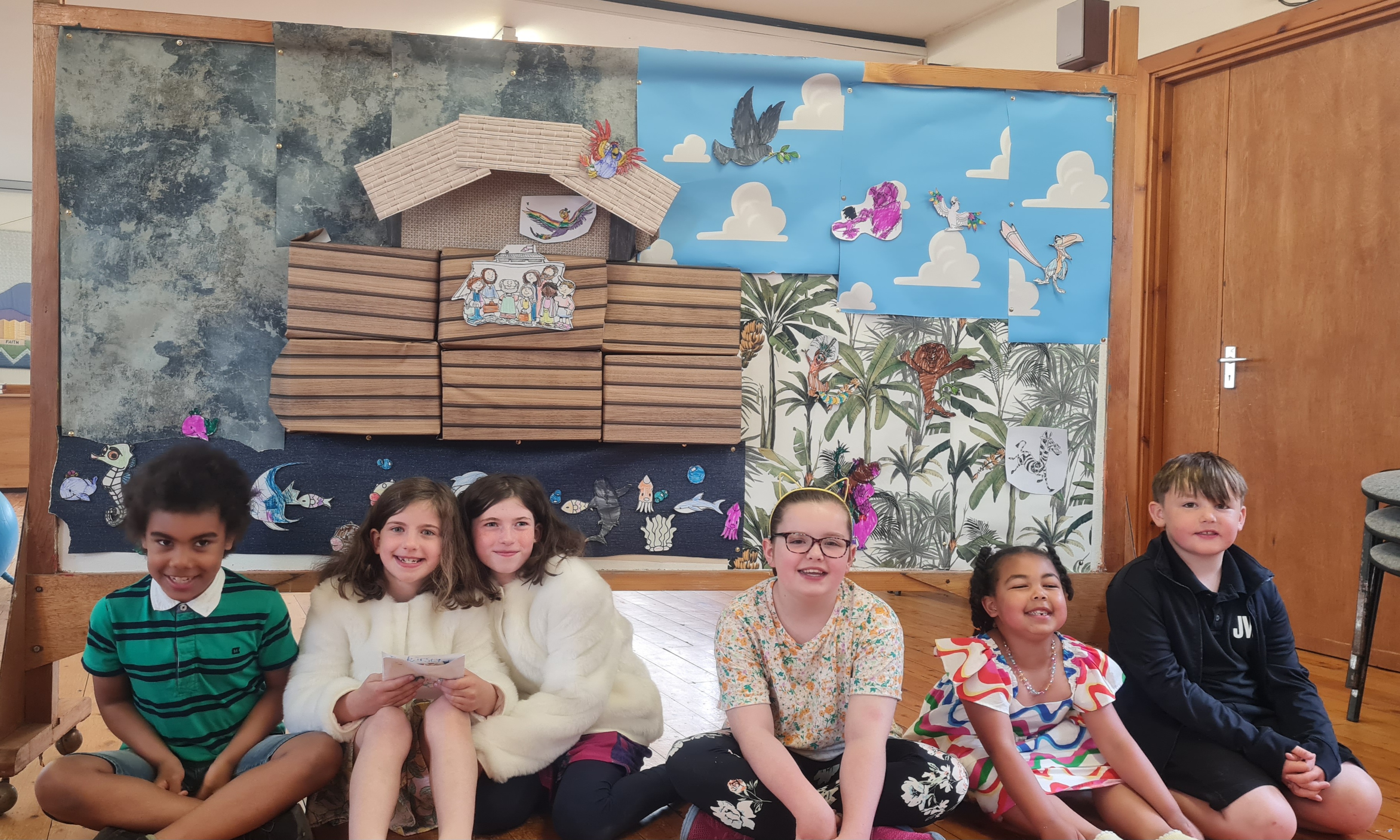 The children were learning about Noah’s Ark and the flood. They constructed a display to show the Ark as it went from flood to good weather, and displayed some of the animals that would have been carried in the Ark