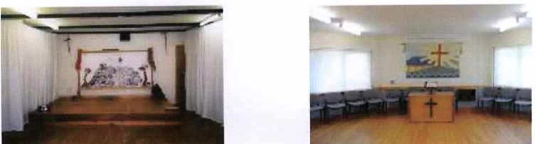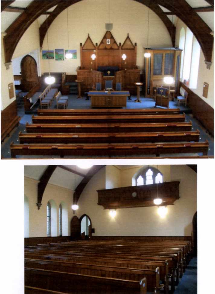 Preliminary thoughts as to alterations required were: removal of pews, pulpit, provision of two toilets and a small kitchen, plus the formation of a new doorway at the opposite end of the existing one. It was decided to advertise the pews and pulpit for sale and this resulted in –